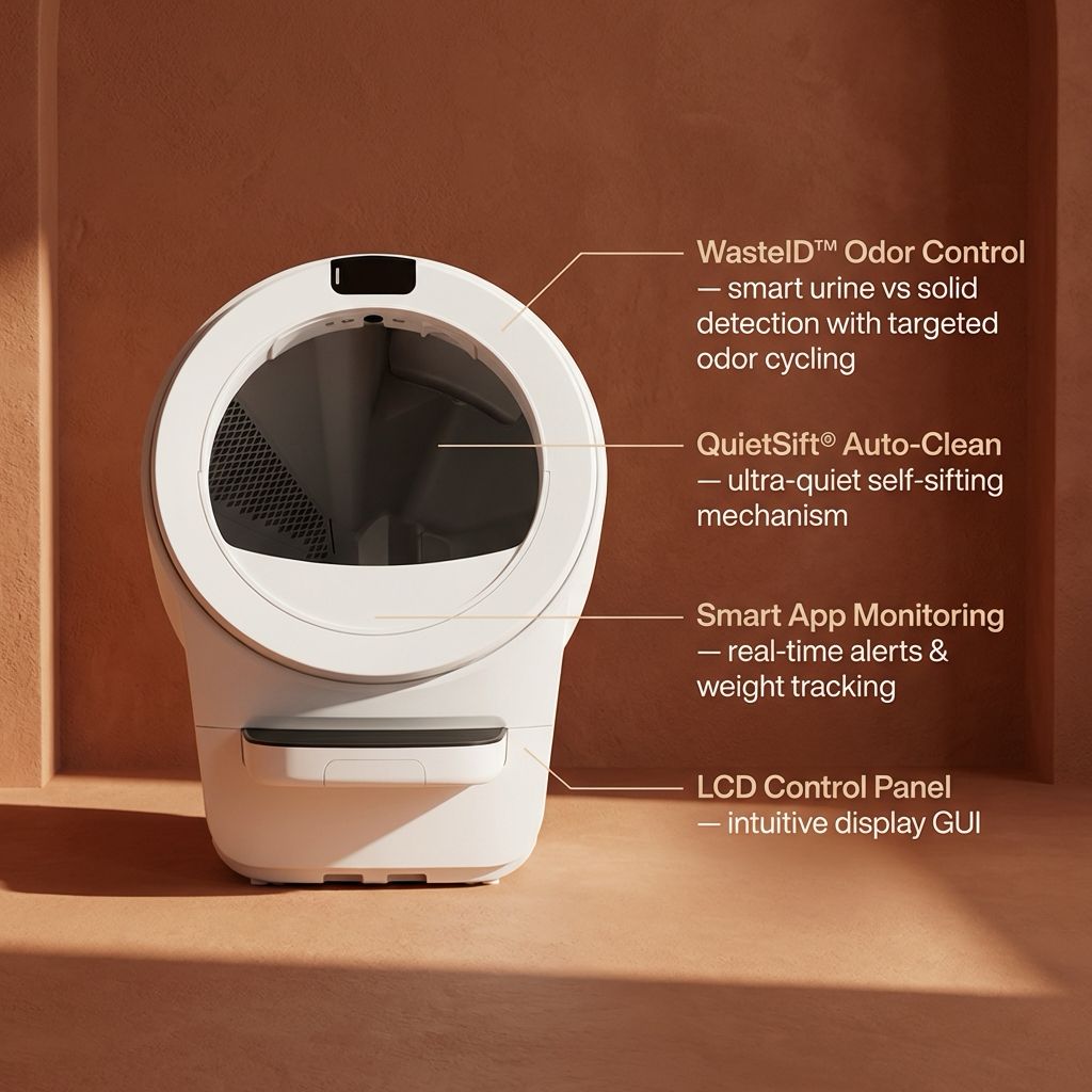 The world's most intelligent self-cleaning litter box. AI dual HD camera, WasteID™, QuietSift®. Built for modern homes with cats who deserve better.